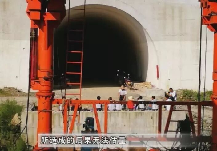 巴野路一标段项目部副经理 郭家强:当地的阻工的村民,强行把我们电闸拉掉,在这个期间我们的架梁机正在工作,正提着一片梁,在这个时候是非常危险的,所造成的后果无法估量,有可能造成桥机的翻塌,桥梁损毁,甚至威胁着喻家河大桥整体结构的安全性。