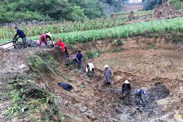 云上巴东报道(特约记者 梁勇 通讯员 向传钊 摄)9月19日,巴东县官渡口镇大淌村村民们正在淤泥塘清淤除淤。 为了让该村一、五、七组500余名村民吃上干净卫生的饮用水,官渡口镇大淌村村支“两委”和驻村“尖刀班”启动解难资金,组织村民对2口近600方的泥水塘进行排水清淤、除草、补缝、砌坎,建护栏、修泵站。 (责任编辑:段磊)