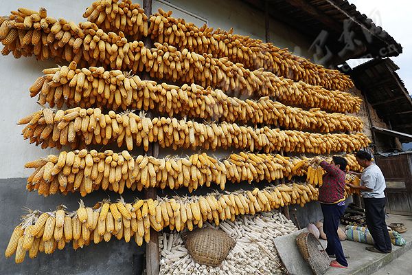 云上巴东报道(融媒体记者 焦国斌 摄) 10月7日,巴东县沿渡河镇泉口村村民正在晾晒收获的玉米。 金秋时节,巴东种植的30多万亩玉米喜获丰收。连日来,各地农户紧抓晴好天气进行收割、运输和晾晒玉米。 (责任编辑:廖薇子)