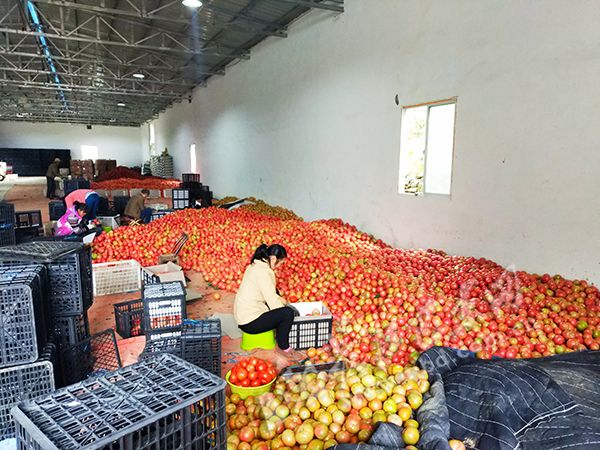 目前正值番茄采摘时节,该村优质番茄在上海、武汉等地供不应求,日均销售量达八万斤。