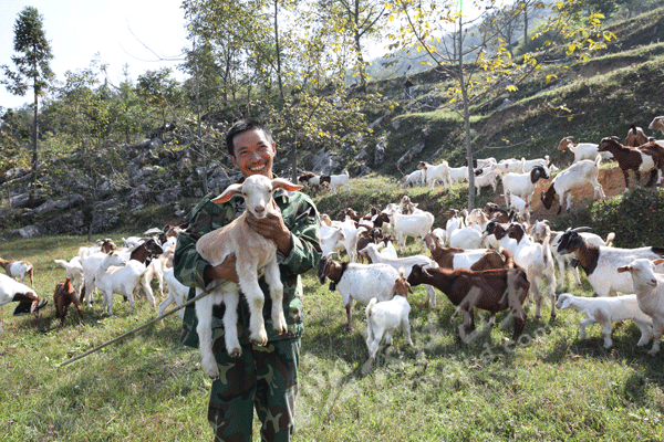 今年48岁的马天喜,过去因两个儿子上学致贫,仅靠自己外出务工很难维持家用,家境十分困难。2014年,马天喜的大儿子想在家里发展养殖业,买回来100多只山羊,因为养羊回报周期长,迟迟未看到收益的大儿子便出门务工了。